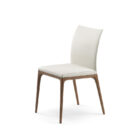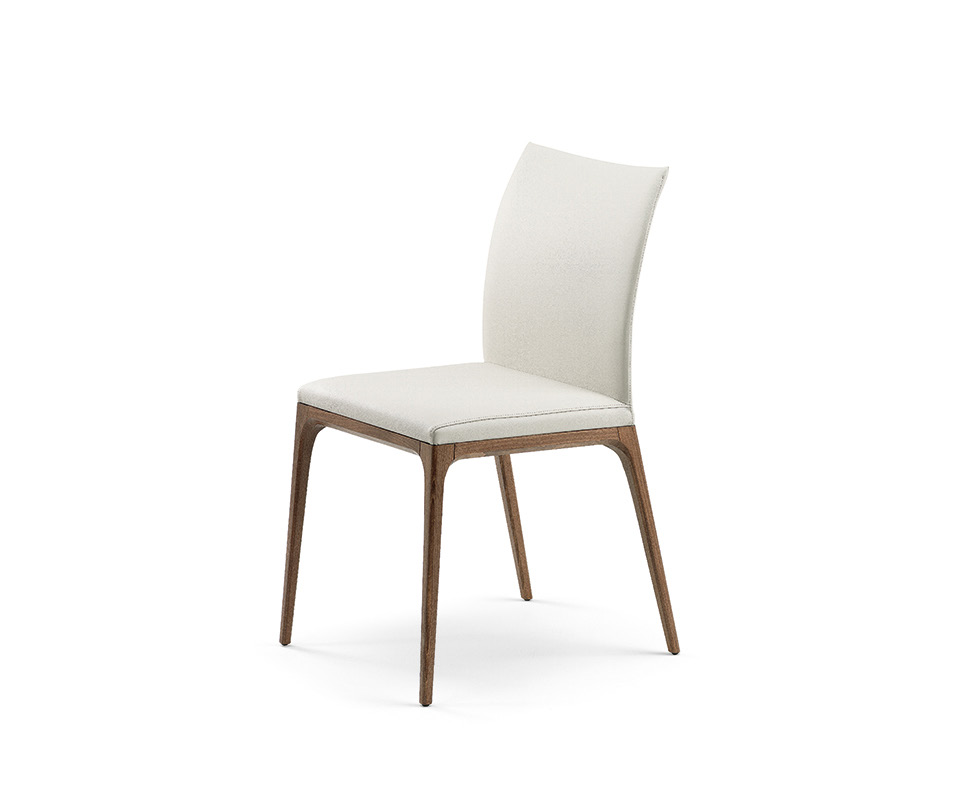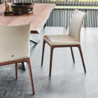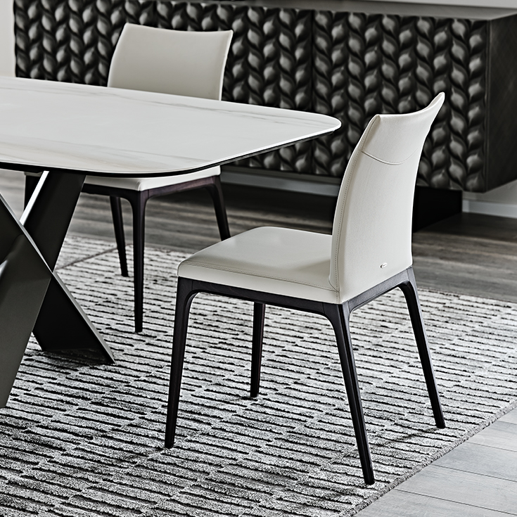 The genuine comfort of a modern design chair is complemented with a timeless allure. Arcadia has a sophisticated/refined style: its elegant simplicity – combined with the refined workmanship of the wooden base – makes it an essential component for the living room area, both for residential projects and design workspaces. The structure made of high-quality solid wood and the refined range of finishes create multiple style combinations that are available in all versions, including the one with a high back, the kitchen stool and the Arcadia Couture model. The latter is made by a glam diamond-quilting on the backrest of the soft leather chair.