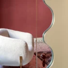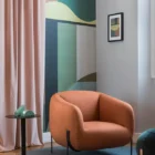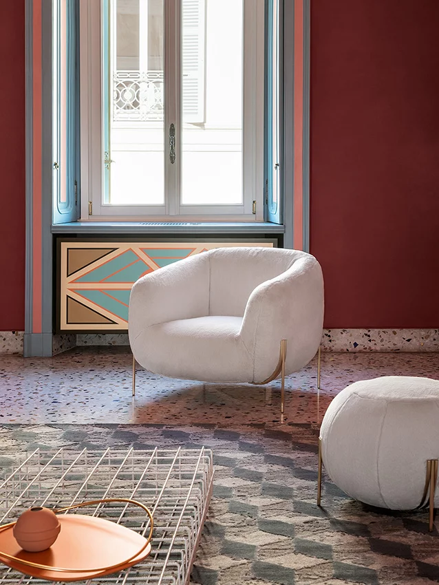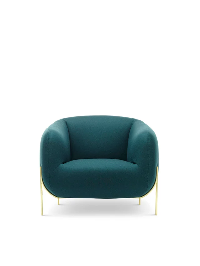 Sometimes a name can say a lot, sometimes it says everything. Geo is an all rounded armchair, the protagonist in a home. It’s generous without invading space, welcoming without being suffocating and soft without being informal. Thanks to its unique design Geo is voluminous yet light, like a nest suspended in air held up by small branches. The proportions have been designed with upmost attention. Every detail has been carefully studied to give life to a special object where the main volume of the seat and the very light volume of the legs find a unique harmony together. The metallic structure adds a luxurious feel to the object and is made for easy cleaning. Fully removable covers.