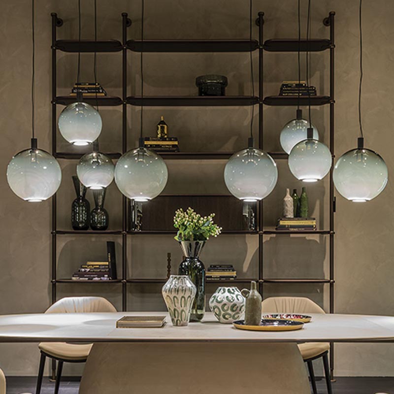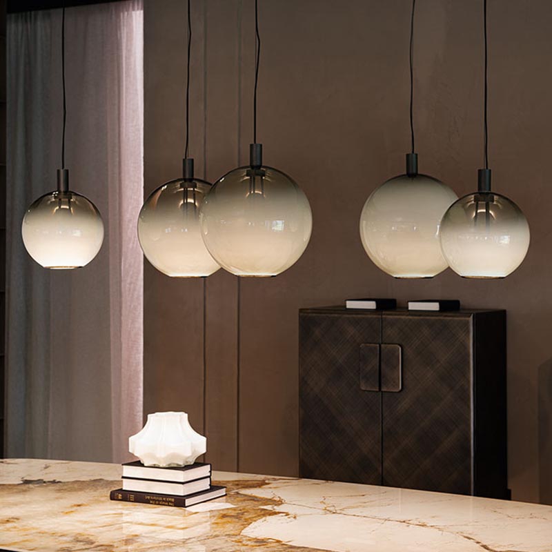 With multi-level compositions combining several of these rounded glass lamps at different levels, your living space gains a refined, harmonious accent—one that pairs beautifully with furniture featuring generous, flowing lines.